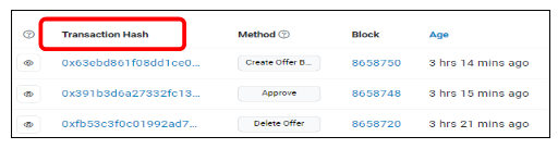 * vous voyez alors les Transaction hash des transactions que vous avez faites avec votre wallet