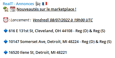Pour chacune de ces propriétés, il y a donc deux RealTokens : un en Reg D et un en Reg S.