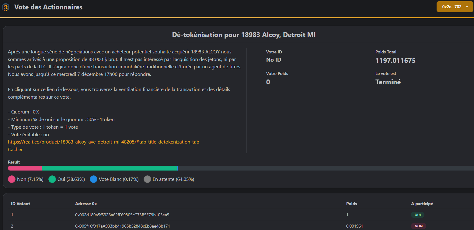 Un [vote on-chain](https://community-realt.gitbook.io/tuto-community/defi-realt/vote-realt) est organisé pour les propriétaires de ce RealToken, afin de statuer sur cette proposition :