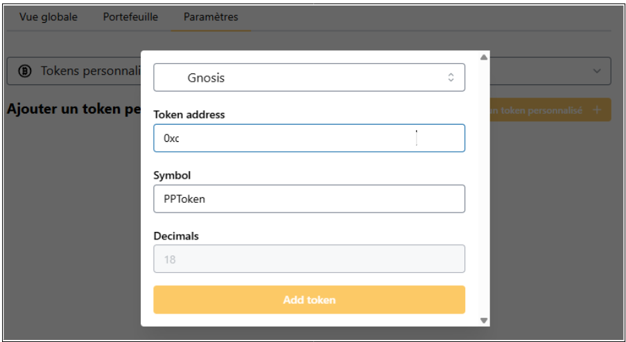 Les tokens et adresses personnalisés sont stockés sur votre appareil/navigateur. Vous ne les retrouverez donc pas, si vous changer d'appareil/navigateur.