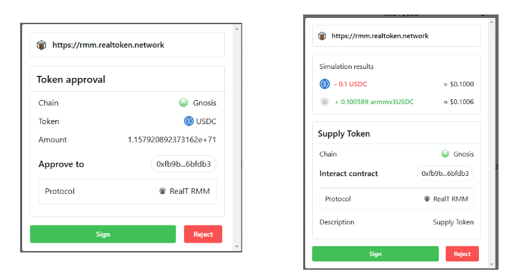 La DApp *RealToken wallet* est une application Web et pas une extension de navigateur comme MetaMask ou Rabby. Les actions sont donc moins fluides, mais cela devrait s'améliorer avec le temps ..&#x20;