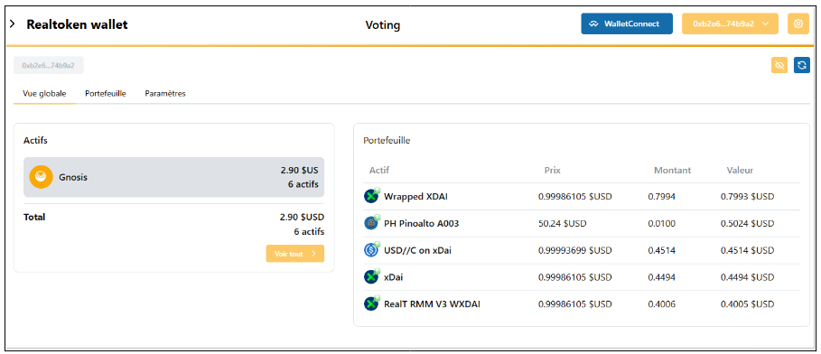 Si l'application WalletConnect venait à ne pas fonctionner, une fonction de vote a été rajouté directement sur le *Realtoken wallet.*