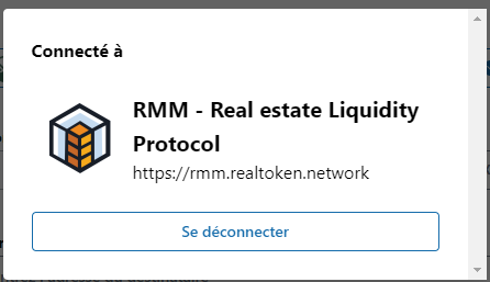 * Retournez sur l'instance RMM et en haut à droite apparait bien, que vous êtes connecté avec l'adresse de votre *RealToken Wallet.*
